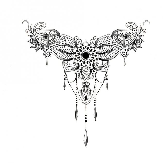 Eine Goldkette um den Hals ist ein mächtiger Talisman, der Reichtum und Wohlstand anzieht. Dieses Symbol ist ein Magnet für Erfolg und materiellen Wohlstand. Die Tätowierung macht eine Person attraktiv für das andere Geschlecht, so dass sie von Menschen verwendet wird, die einen Seelenverwandten finden wollen. Das Tattoo steht für Selbstständigkeit, Selbstvertrauen und einen starken Charakter. Solche Menschen wissen, wie man Geld verdient, und werden auch in den schwierigsten Zeiten nicht verarmt sein. Sie folgen der Mode, wählen teure Kleidungsmarken und lieben Luxusartikel.