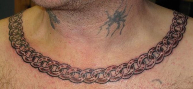Für moderne Männer ist die kriminelle Bedeutung solcher Tätowierungen ein Relikt der Vergangenheit geworden. Das Bild auf der Haut von Ketten, Colliers oder wenigen Gliedern hat eine andere Bedeutung bekommen. Oft haben sie nur eine dekorative Funktion.