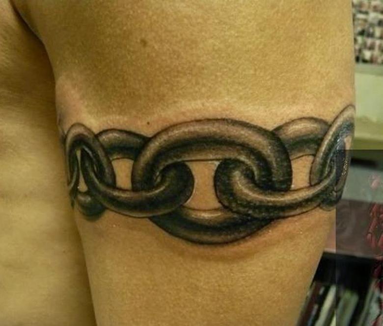 Ein Kettentattoo ist auch bei Bikern und Rockern beliebt. Oft sind die Armbänder als Stacheldraht und verschiedene scharfe Elemente dargestellt. Für Männer symbolisiert die Tätowierung Stärke, Macht, Durchsetzungsvermögen und Entschlossenheit.