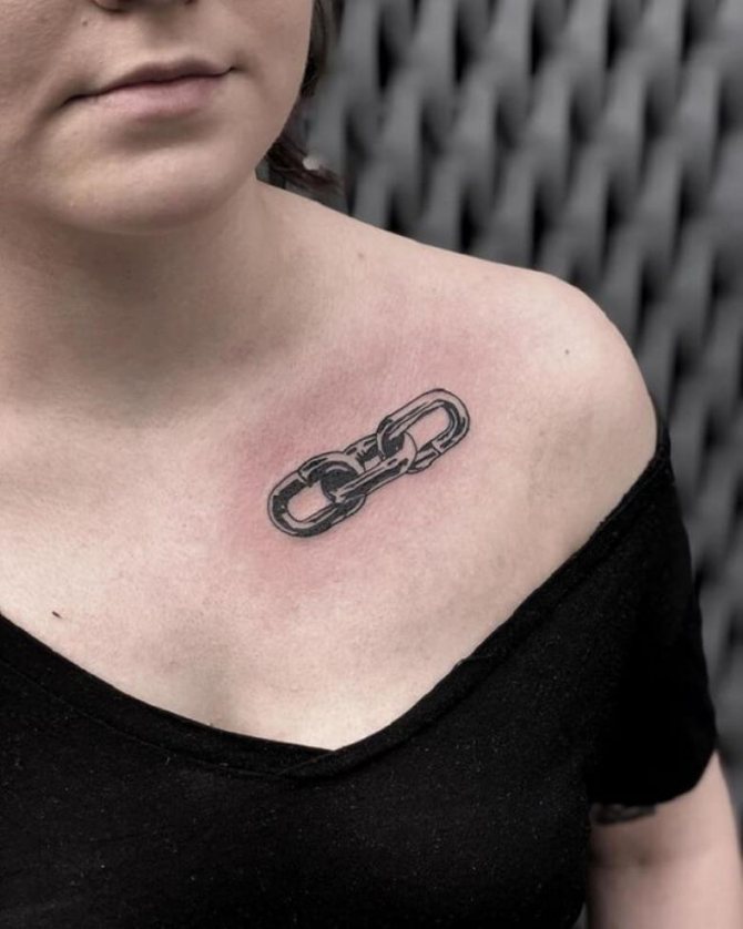 Andererseits stehen die zerbrochenen Ketten für innere Freiheit, Freiheit von Einfluss und Unabhängigkeit. Diese Tätowierung kann von Menschen getragen werden, die ihr ganzes Leben damit verbracht haben, für eine Person zu arbeiten und sich ihr bedingungslos zu unterwerfen. Sie hatten keine Ahnung, wie sie ihr Leben anders gestalten konnten, weil sie unter starkem Einfluss standen. Eine zerbrochene Kette ist ein Symbol für eine glückliche Befreiung, einen neuen Lebensabschnitt und eine glückliche Zukunft.