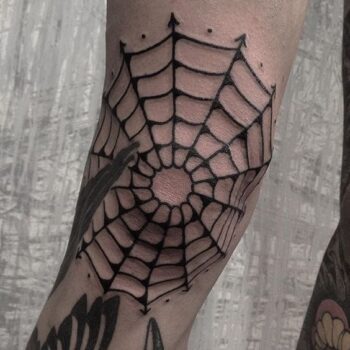 Das Knie ist nach dem Ellenbogen die zweithäufigste Stelle, an der sich Spinnweben bilden. Das Muster in diesem Bereich wird von Männern gelegt, aber man kann auch Vertreter des schönen Geschlechts treffen. Frauen bevorzugen es, ein Spinnennetz-Tattoo auf eine Blume zu stechen.