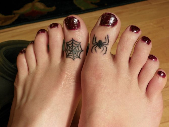 Menschen, die sich in der Gesellschaft bemerkbar machen wollen, tragen Spinnweben auf einem Pinsel, obwohl dieser Teil des Körpers für die Anwendung solcher Bilder nicht beliebt ist. Die Bürste ist eine auffällige Stelle, so dass das Muster von allen gesehen werden kann.