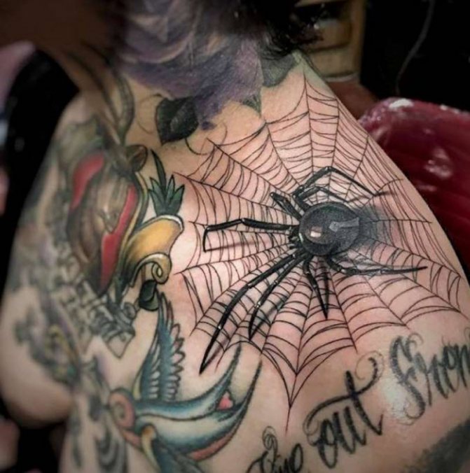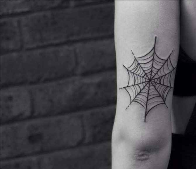 Die Bedeutung der Spinnennetz-Tätowierung hat ethnische Wurzeln des Ursprungs. Bei den nordamerikanischen Indianern war die durchbrochene Gestaltung einer Spinne ein Symbol für Unerreichbarkeit.