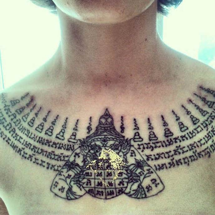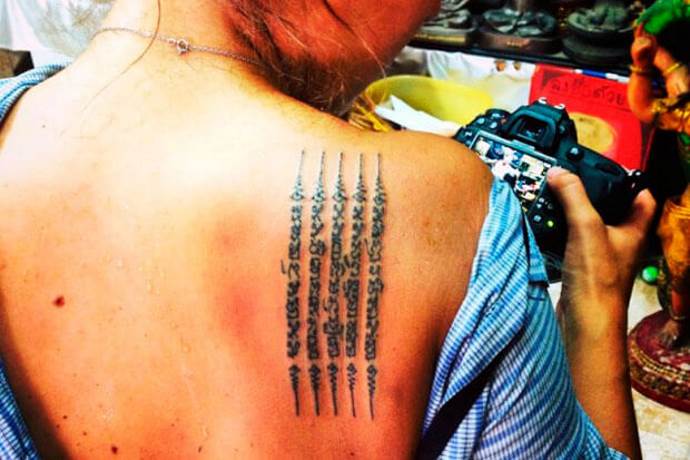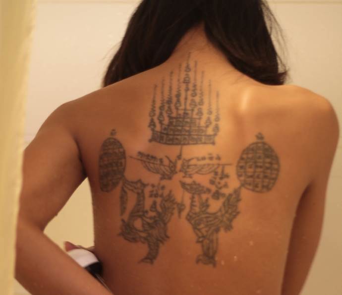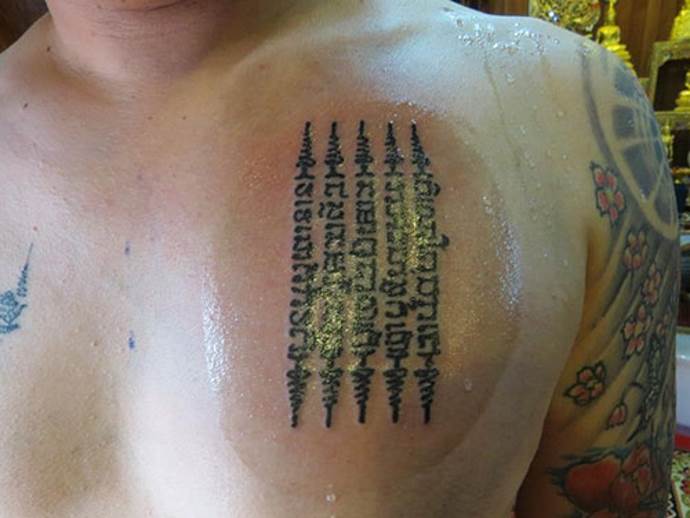 Nur Männer bringen die Inschriften an. Nach der Tradition ist es Thais vom Rang eines Mönchs verboten, den Körper einer Frau zu berühren. Bei Angelina Jolie erschien ein Exemplar, das in der buddhistischen Gemeinschaft der Auserwählten für Empörung sorgte. Es stellte sich heraus, dass der Prominente ein hohes Honorar an einen Mönch gezahlt hatte, der seines Amtes enthoben worden war, so dass das Werk nicht als authentisch mit einem versteckten Subtext gewürdigt wurde.