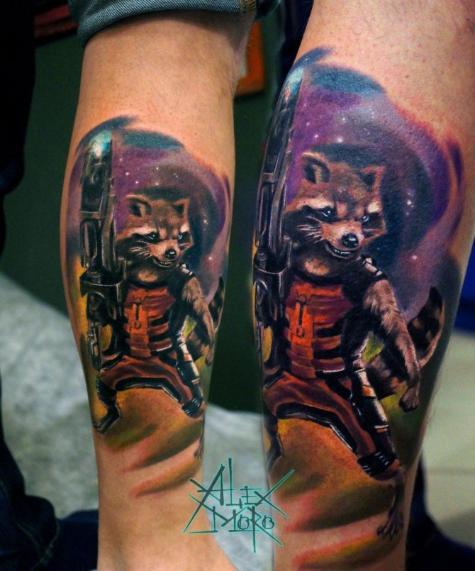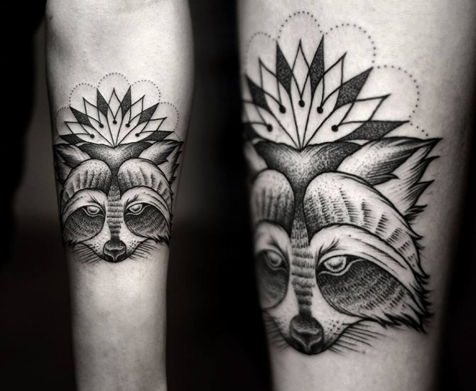 In der modernen Tätowierkunst tauchte vor kurzem das Symbol des Waschbären auf. Solche Tätowierungen sind bereits im 21. Jahrhundert relevant geworden.