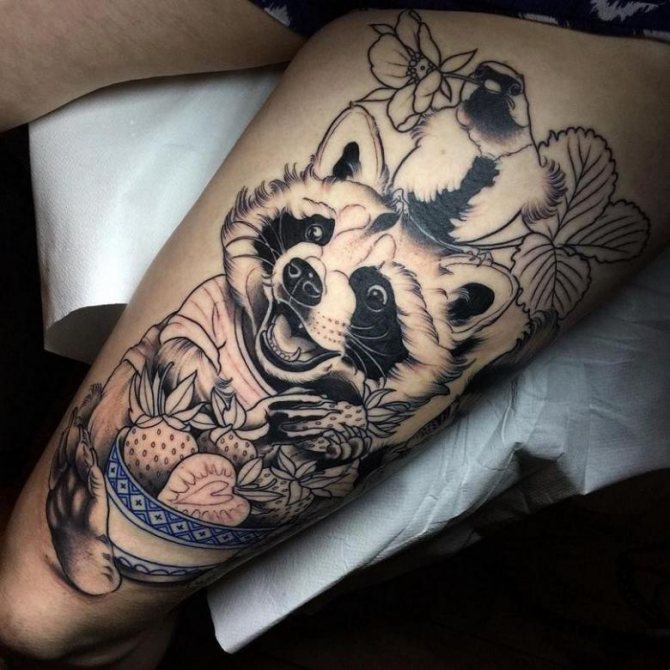 Tattoo in Form eines Waschbären erschien vor kurzem. Dieses niedliche Tier "nabivayut" eine Menge von Mädchen und Jungs. Das Bild auf dem Körper kann leicht ändern Sie Ihr Leben, die Beseitigung aller Probleme und Schwierigkeiten, zu schützen und zu sichern.