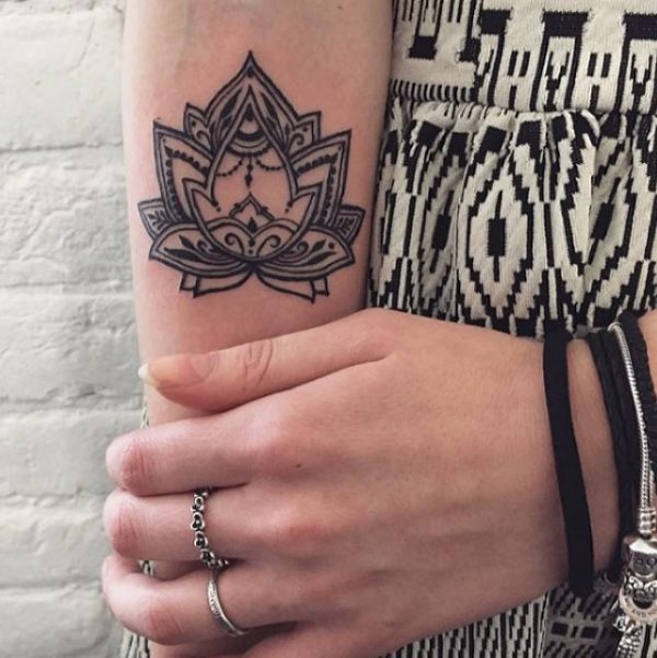 - Lotos - Eine Lotus-Tätowierung gilt in einigen Kulturen als heilige Blume, eine Mehendi-Malerei auf dem Arm in Form eines Lotos bringt Glück;
