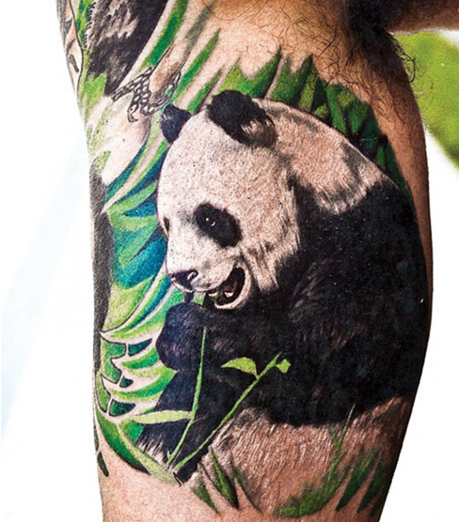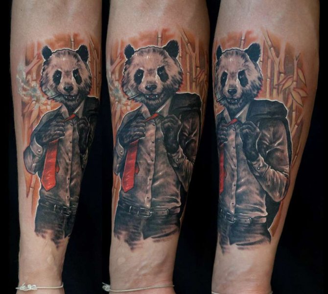Als Tattoo-Objekt ist das Bild eines Pandabären nicht üblich. Der Panda wurde in Südostasien sowie in einigen wenigen Ländern Europas und der ehemaligen Sowjetunion intensiv genutzt. Im Gegensatz zu vielen Tieren, die als Tattoos verwendet werden und eine doppelte Bedeutung haben, nämlich eine positive und eine negative, ist der Panda ein Tier, das ausschließlich positive Eigenschaften, Gefühle oder Emotionen symbolisiert, wie zum Beispiel