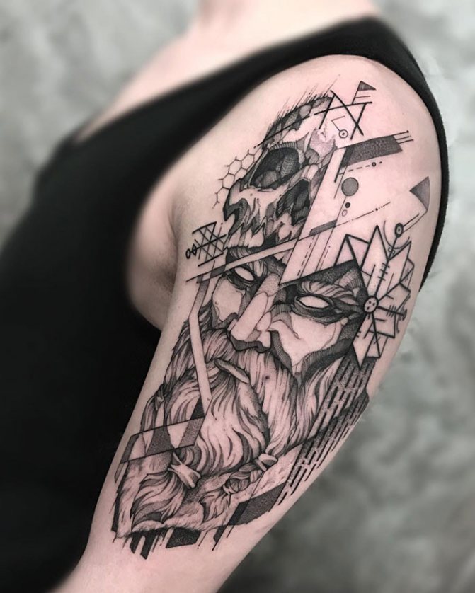 Schultern. Hier wird gut aussehen skandinavischen Tattoo von ineinander verschlungenen Ornamenten, mit Runen und Bilder von Gottheiten aus der Mythologie oder Krieger. Dies ist ein Symbol der Tapferkeit und stärkt die Kraft des Mannes.- Unterarm. Geeignet für ein mittelgroßes Bild. Meistens finden sich in diesem Bereich Tätowierungen mit Gottheiten, Runen und verschiedenen skandinavischen Legenden. Auch Pflanzenmotive sind am Handgelenk zu sehen.