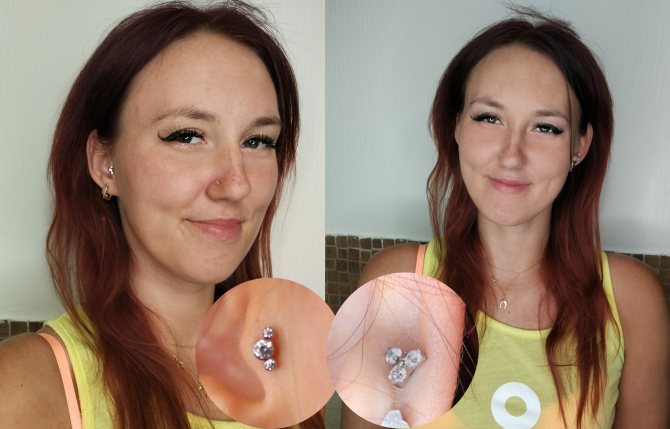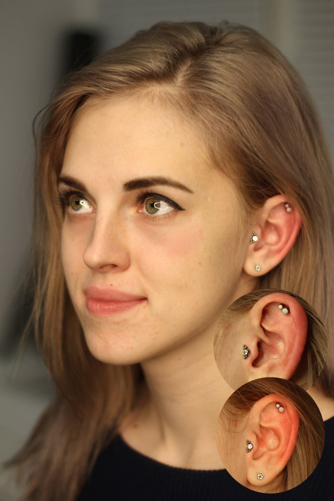 Knorpelpiercing und 2 Ohrläppchenpiercings