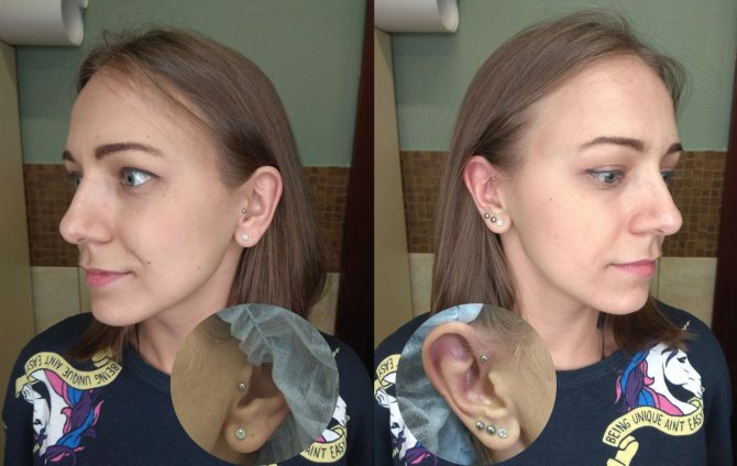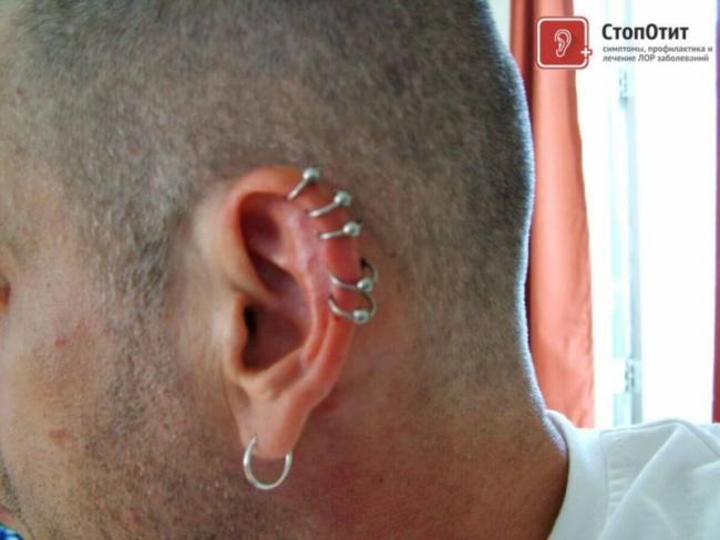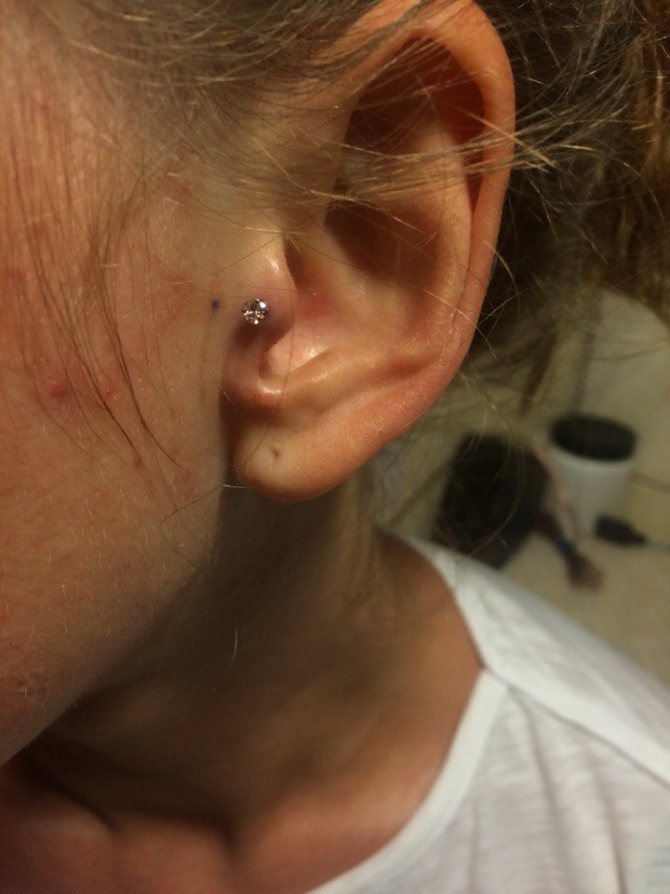 Jede Unregelmäßigkeit in der Einstichstelle ist ein Grund, sofort den Ausführenden oder einen anderen Arzt aufzusuchen. Leider kommt es manchmal vor, dass statt eines ästhetischen Lochs mit einer attraktiven Verzierung ein gutartiger Tumor entsteht. Dieser Tumor wächst sehr schnell, wenn der Einstichkanal nicht richtig angelegt ist oder sich infiziert. Die Größe des Tumors ist von Fall zu Fall unterschiedlich, die größten verursachen einen Hörverlust. Zur Entfernung der Wucherung ist ein chirurgischer Eingriff erforderlich.
