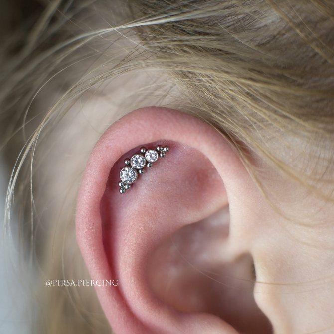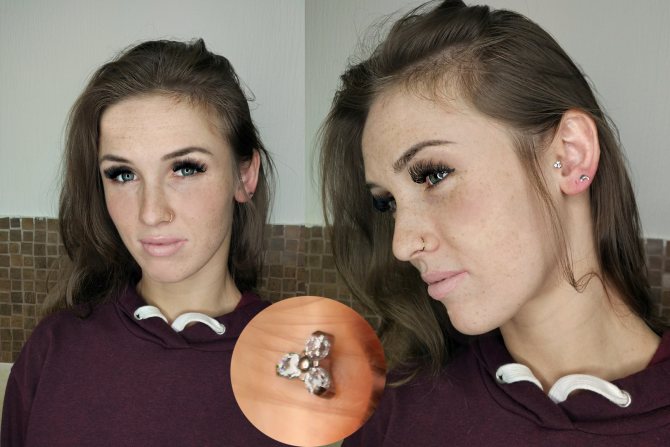 Für die primäre Heilung ist nur gerader Schmuck (Labrette) mit einer Drehung geeignet. Die Fassungen können alles sein - klassische Titankugeln, glitzernde Zirkonia, Opale oder etwas Formschönes. Die einzige Ausnahme - die Ringe, können Sie sie erst nach 3 Monaten (idealerweise sechs Monate), wegen seiner Form sie in das Loch drehen und traumatisieren sie, die nicht zulassen, dass eine frische Piercing zu heilen. Es ist auch wichtig, die Ohrringe für das Tragus-Piercing nach ihrem Material auszuwählen - sie Titan. Chirurgenstahl, Schmuckgold und Silber sind nicht geeignet, da die Legierung Nickel enthält, das beim Tragen oxidiert und viele Probleme verursacht.