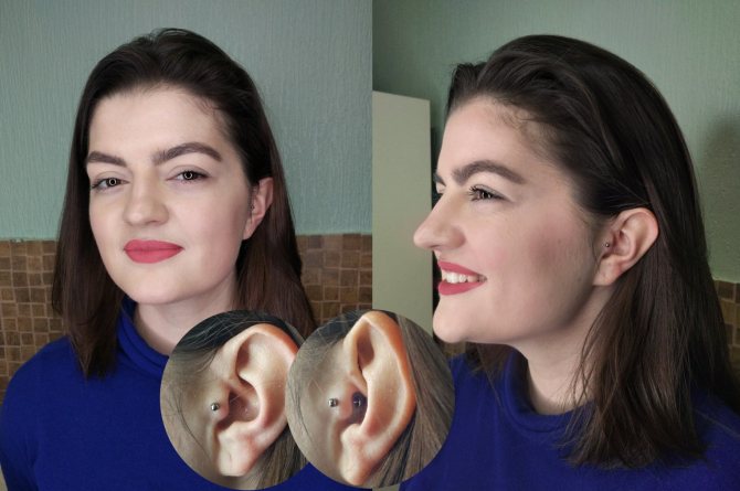Wir haben bereits darüber gesprochen, wie man eine Öse durchsticht, aber wie pflegt man sie? Die Pflege ist ein extrem wichtiger Teil, zu Beginn müssen Sie kaufen ein Antiseptikum (muss ein Spray sein) Miramistin oder Octenisept, behandeln Sie die Einstichstelle 2 mal täglich (die ersten 2 Tage), dann einmal täglich. Ein neuer Einstich muss immer vierzehn Tage lang mit einem Pflaster bedecken.Jede Bandage ist geeignet, aber die Hauptsache ist, dass der Schmuck weich unterlegt ist. Wenn eine Verletzung vorliegt und sich die Einstichwunde entzündet hat - Baneocin-Salbe (Salbe, nicht Puder) kaufen, zweimal täglich Tragus auf die Einstichstelle auftragen und diese wieder verschließen (die Salbe jedoch nicht länger als 5 Tage verwenden). Dämpfen Sie die Einstichstelle 3-4 Wochen lang nicht. (d. h. keine Dampfbäder und Saunas, auch keine heißen Duschen und Bäder für längere Zeit). Streng verboten, den Schmuck zu drehen und zu wenden, das getrocknete Blut abzureißen. Verwenden Sie während der Behandlung keine Wattestäbchen und Wattepads! Schlafen Sie nicht auf dem Piercing. Nach 2-3 Wochen ist es möglich, eine Verkleinerung vorzunehmen (das Ornament in ein kürzeres umzuwandeln), aber es ist für dieses Piercing nicht notwendig.