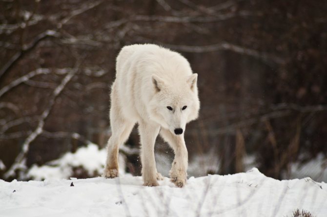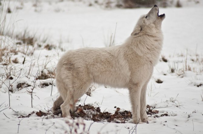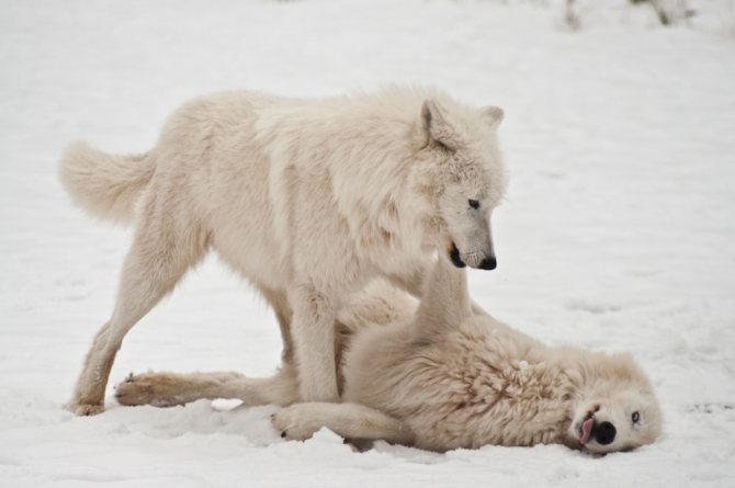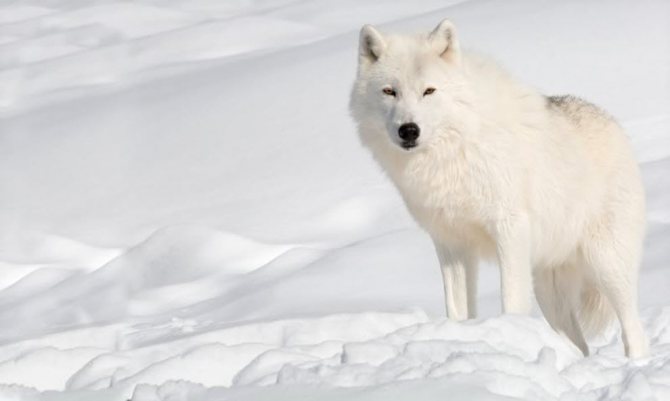 Mit dem Wintereinbruch beginnen die organisierten Rudel der Polarwölfe mit der Suche nach Orten mit günstigerem Klima, wo sie ihre Beute finden können. Sie ziehen mit Rentierherden nach Süden. Wenn ein Polarwolf lange Zeit keine Nahrung gefunden hat, frisst er etwa 10 Kilogramm Fleisch. Die Kadaver werden mit ihren kräftigen Reißzähnen zugerichtet und das Fleisch wird fast sofort verschlungen.