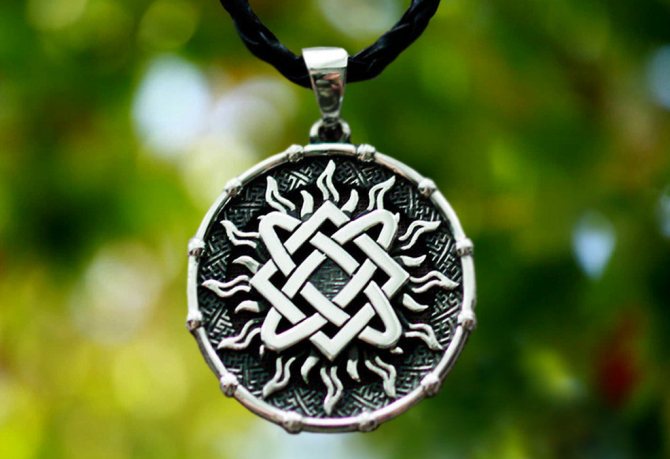 Das Amulett hat viele Bedeutungen. Zunächst einmal steht das Symbol, genau wie das Quadrat von Svarog, für die Einheit der drei Welten: die Welt der Götter, der Menschen und der toten Seelen.