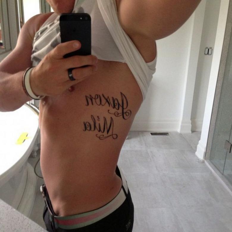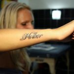 Die beliebteste Option von allen. Sie wird häufig von Medienpersönlichkeiten und Hollywood-Stars verwendet. Die Namen der Kinder sind auf den Körpern von Angelina Jolie und Johnny Depp zu finden.