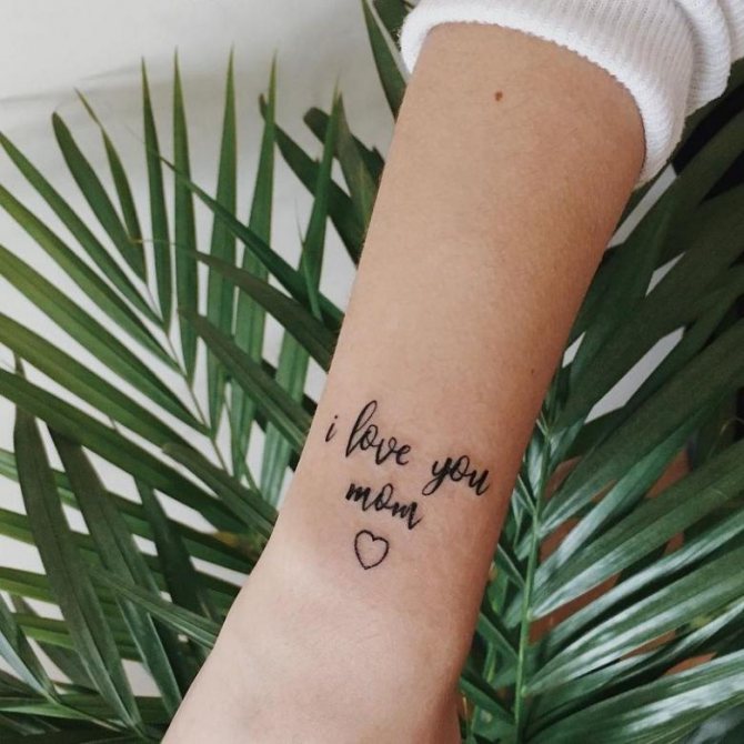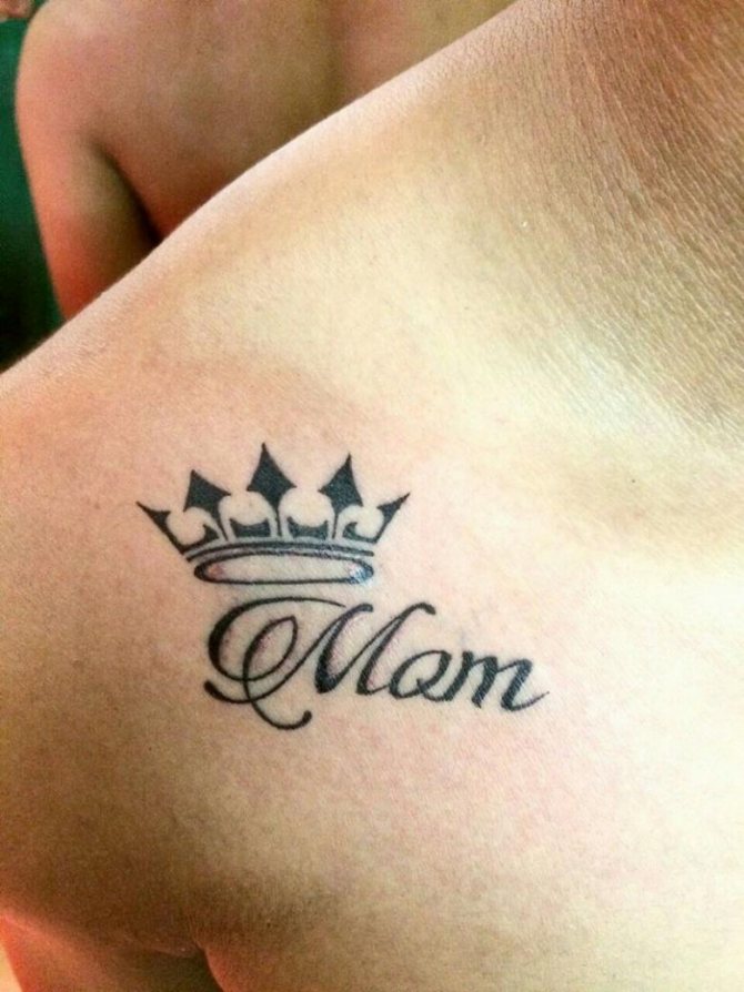 - Inschrift. Tattoo in Form einer Inschrift Mom hat eine große Popularität. Die Anbringung einer Inschrift ist eine gute Idee. Die Zeichnung sieht prägnant aus. Das Bild kann als eigenständiges Tattoo oder in Komposition mit verschiedenen Elementen dargestellt werden.