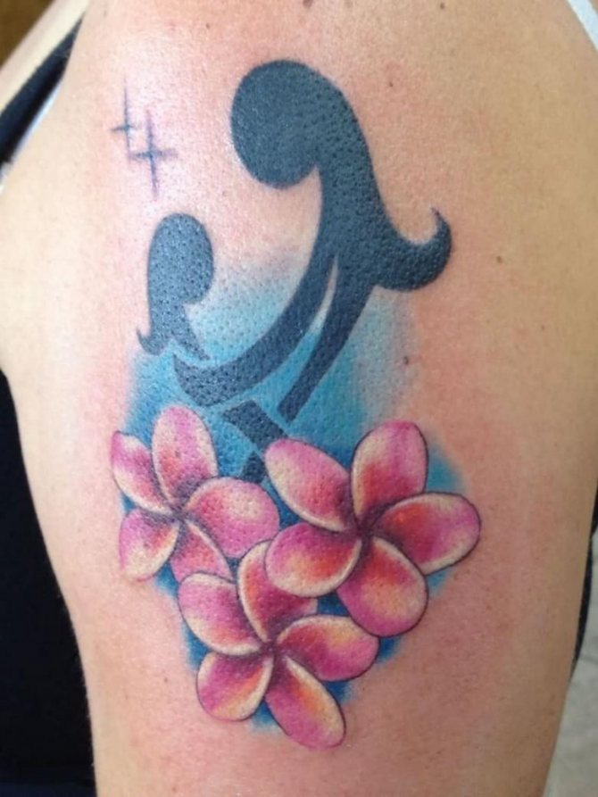 Ein Merkmal der Tätowierung, die der Familie gewidmet ist, ist das Bild der gepaarten Elemente. Das Bild, das zu Ehren der Mutter gemacht wurde, ist eher sentimental. Hier kann das Geburtsjahr hinzugefügt werden, da das Datum für Mutter und Kind von Bedeutung ist.