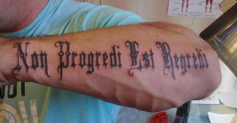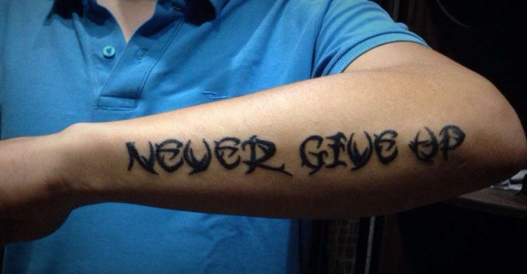 Um Faulheit, Unsicherheit, Ängste und Zweifel zu überwinden, tätowieren viele Männer eine Inschrift mit einer motivierenden Botschaft. Hier sind einige markante Beispiele für Tattoo-Designs: