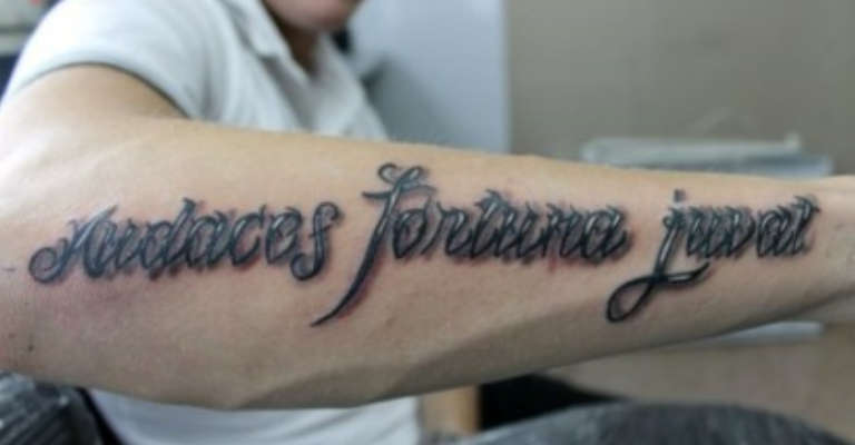 Die Wahl der Sprache der Inschrift für die Tätowierung ist in der Regel nicht schwieriger als die Wahl einer Skizze. Meistens sind sie auf Englisch. Nach wie vor beliebt sind Tätowierungen auf Latein.