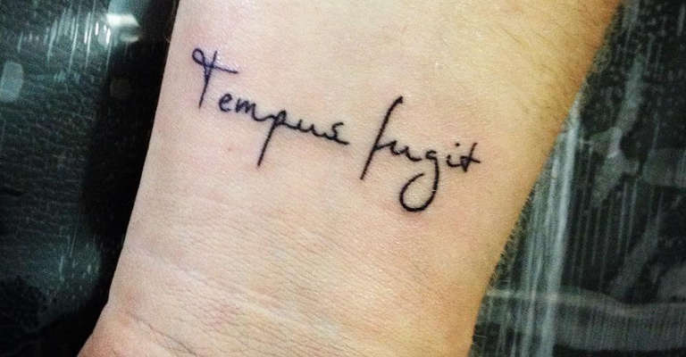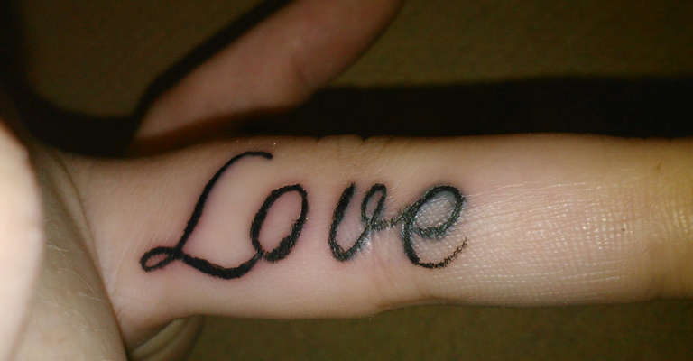 Kleine tätowierte Inschriften werden auf dem Handgelenk platziert, da lange Sätze schlecht zu sehen sind und verzerrt werden können. Im Idealfall sieht ein einzelnes Wort gut aus.