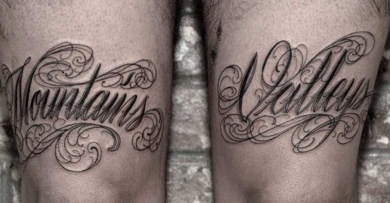 Wenn eine Hand für die Tätowierung verwendet wird, werden die Buchstaben entlang der Rippenlinie der Handfläche geschrieben. Seltener wird auch der Handrücken verwendet. Die breite Seite des Bizepsmuskels wird am Oberarm eingesetzt.