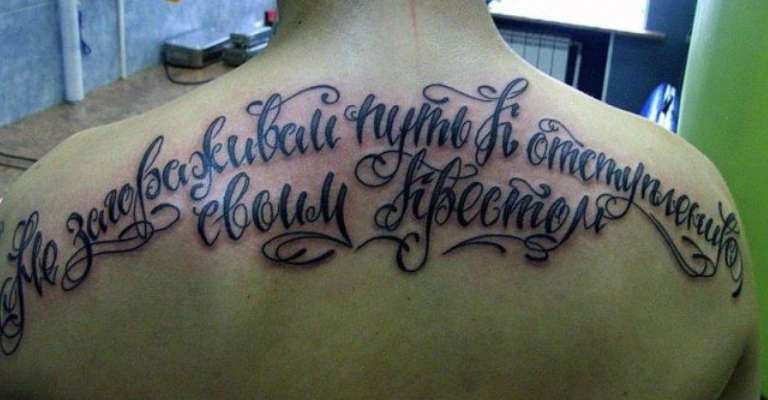 Früher war es in Mode, sich in Fremdsprachen tätowieren zu lassen. Zum Glück ist es heutzutage kein Problem, sich in seiner Muttersprache tätowieren zu lassen: Russisch, Ukrainisch und Weißrussisch. Es scheint nicht beschämend zu sein. Und wenn eine coole Beschriftungsidee gewählt wird, weckt sie im Gegenteil das Interesse.