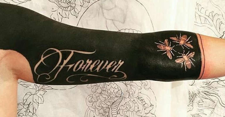 Auf dem ersten Platz in der Popularität für den Standort des Textes sind die Unterarme betrachtet. Die Buchstaben werden entlang der Radiuslinie auf der Rückseite angeschlagen. Seltener sind die Buchstaben in einer Komposition auf der Innenseite des Unterarms angeordnet.