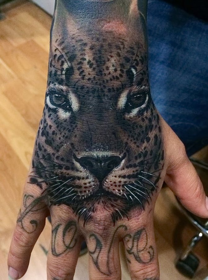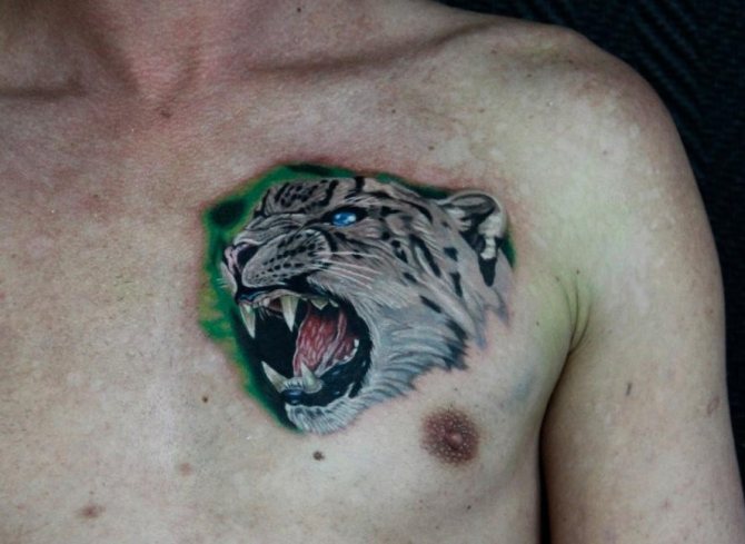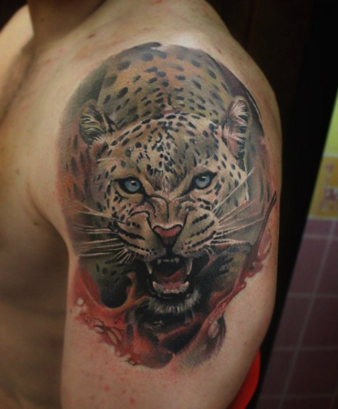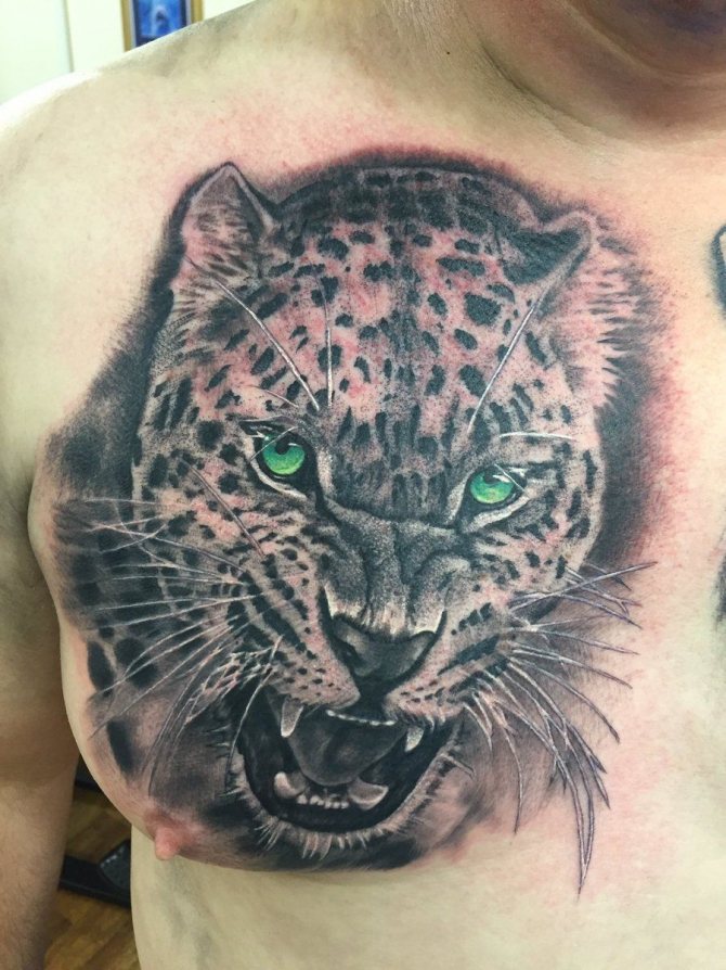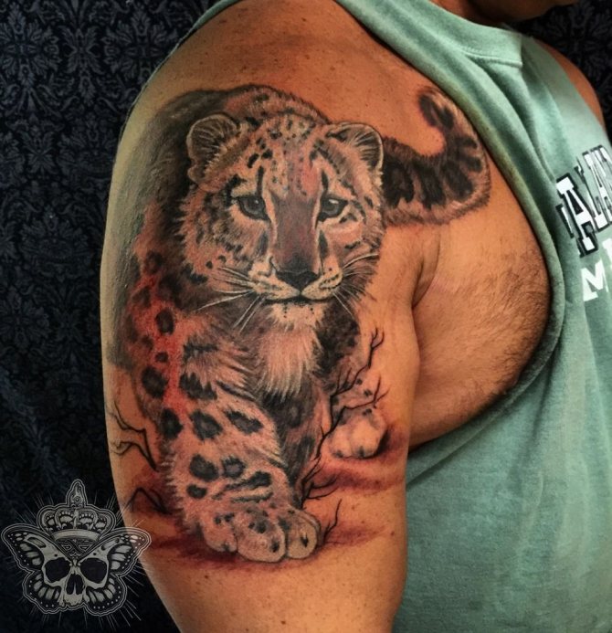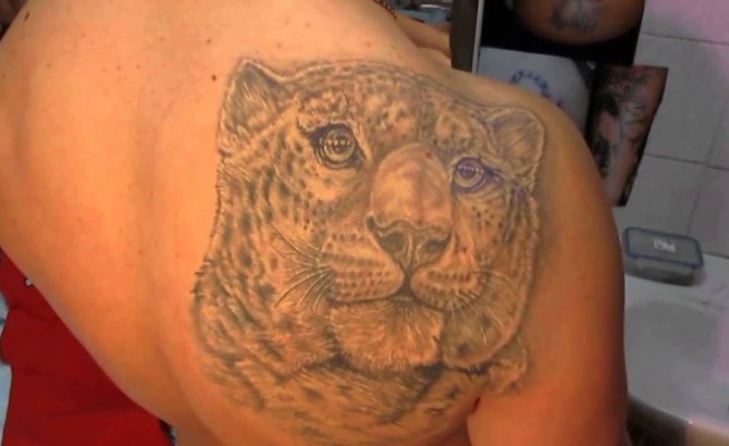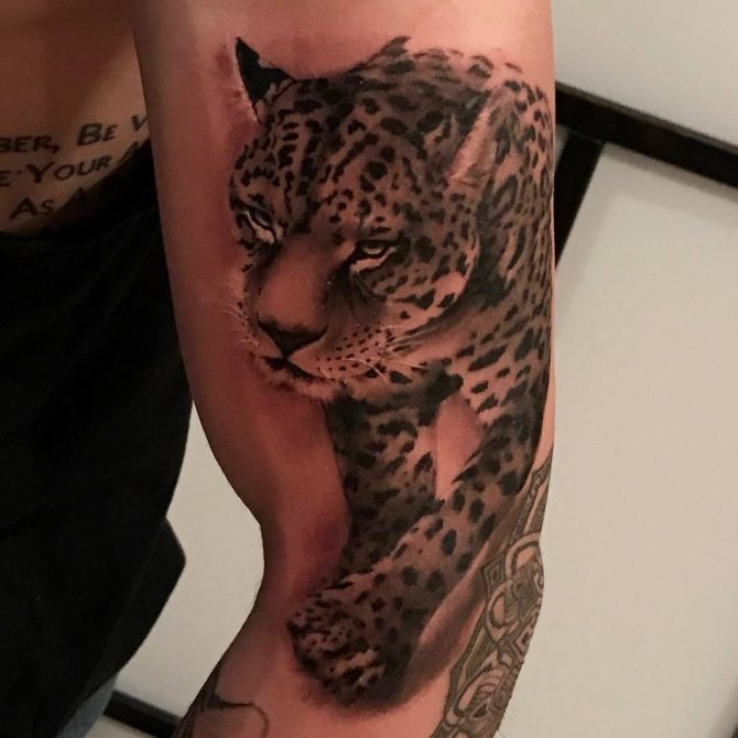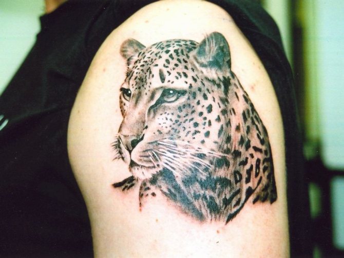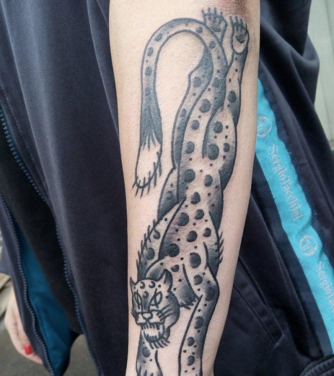 Das Leoparden-Tattoo-Design gilt als universell und ist bei Männern und Frauen gleichermaßen beliebt. Kraft, Mut, innerer Kern und Stärke, Unabhängigkeit, Liebe zur Einsamkeit, Unabhängigkeit und Selbstvertrauen sowie Loyalität und Adel sind die Hauptbedeutungen des Tattoos. Menschen mit einer solchen Zeichnung auf dem Körper sind oft zu schockierenden und überraschenden Handlungen fähig. Der Besitzer dieses Bildes schert sich nicht um die Meinung anderer, führt oft ein unnahbares Leben und ist der rechtmäßige Herr seines eigenen Schicksals.