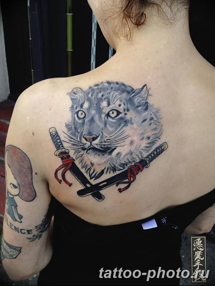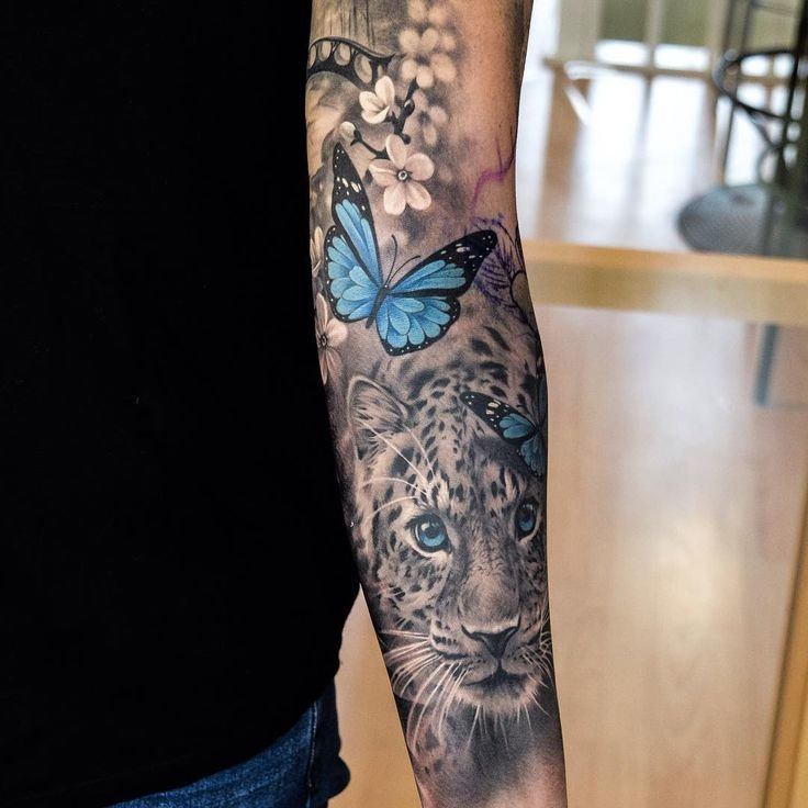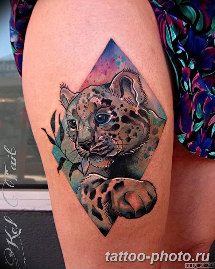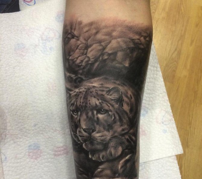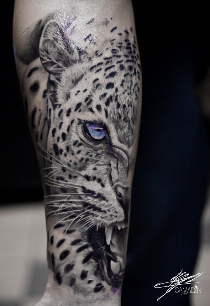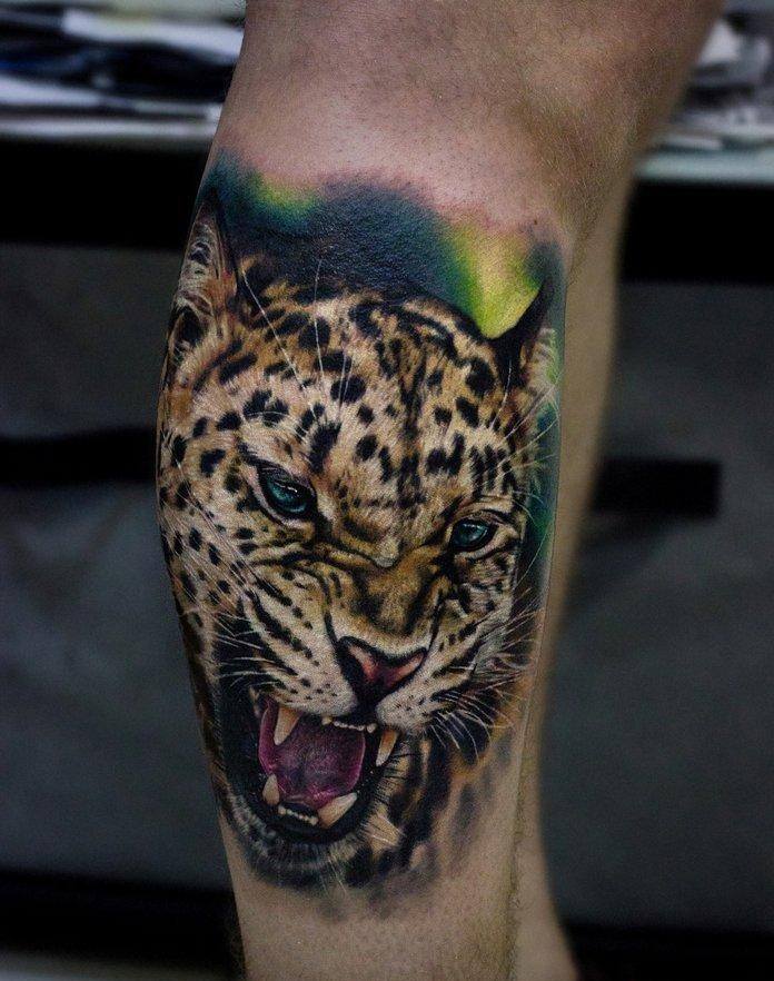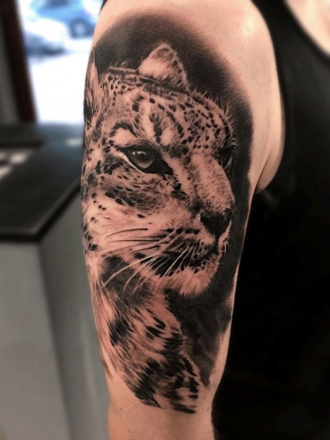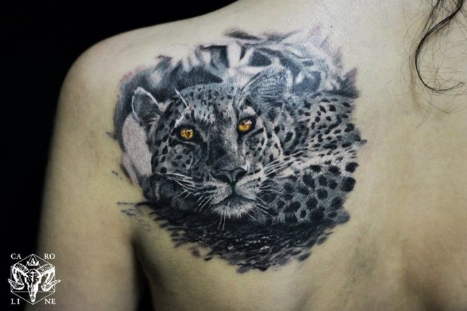 Mädchen bevorzugen natürlich femininere Versionen und ergänzen die Handlung mit zusätzlichen Details. Gebirgslandschaften, Wälder, Pflanzen aller Art sind nur ein kleiner Teil der vielfältigen Ergänzungen des Bildes. Die Leoparden-Tätowierung ist keine Miniatur-Tätowierung und sieht nicht nur auf der Brust und der Schulter, sondern auch auf jedem Teil des Arms oder des Rückens schön aus. Das Leoparden-Tattoo sieht auf der Außenseite des Oberschenkels, des Schienbeins oder des Knöchels gleichermaßen beeindruckend aus.