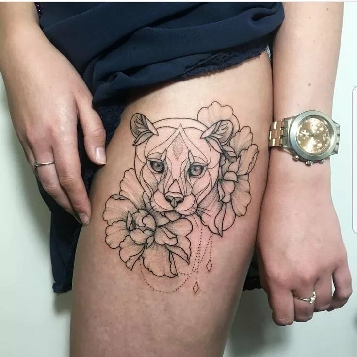 Darüber hinaus können Tätowierungen von Frauen ein grüblerisches, trauriges Tier darstellen. Je nach Technik kann es sich dabei um eine Komposition in Bewegung oder um die Ruhepose eines Raubtiers handeln.