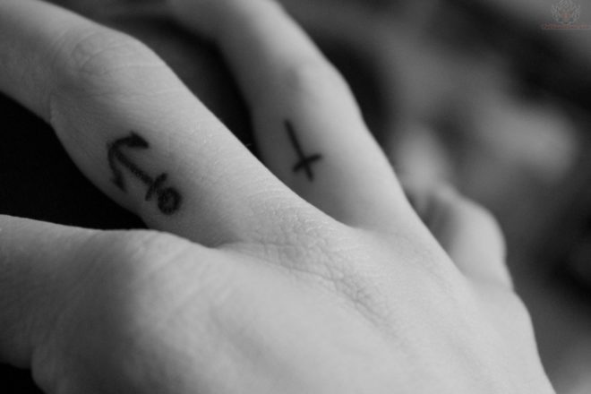 Minimalistische Tattoos mit Kreuzen auf den Fingern der Hand sind bei jungen Mädchen und Jungs sehr beliebt. In der Regel werden sie am Ring- oder Mittelfinger angebracht und sind die Verkörperung des christlichen Glaubens.
