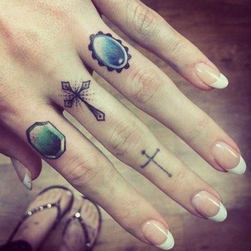 - Das Kreuz am Finger hat meist eine religiöse Bedeutung. Häufig wird diese Tätowierung von gläubigen Menschen vorgenommen;