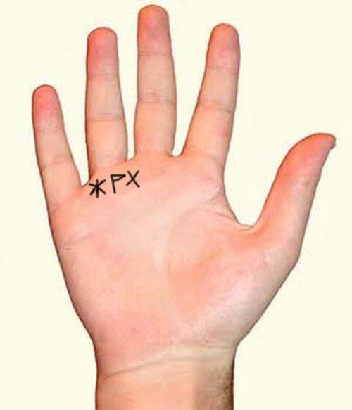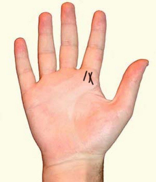 Unterhalb des Zeigefingers befindet sich der Jupiterhügel. Und wenn es deutlich gekennzeichnet ist und sich von den anderen abhebt, ist der Träger eines solchen Symbols ein Anführer und bleibt gleichzeitig aufrichtig und loyal.