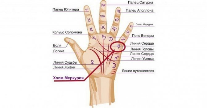 Saturn wird als der Planet des Schicksals bezeichnet, und der Hügel befindet sich direkt unter dem Mittelfinger der Hand. Hier beginnt die Linie, die die Zukunft bestimmt.