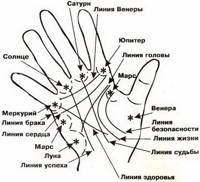 Für eine korrekte Auslegung ist es notwendig, die aktive und passive Hand zu bestimmen. Die rechte Handfläche ist für Rechtshänder aktiv und enthält Informationen, die alle Veränderungen im Leben widerspiegeln, während die linke Handfläche passiv ist und Informationen über den Charakter und das Wohlbefinden einer Person enthält. Es ist besser, sich die Zeichnungen auf der rechten Handfläche anzusehen, um die richtigen Schlüsse zu ziehen. Bei Linkshändern ist die Situation genau umgekehrt.