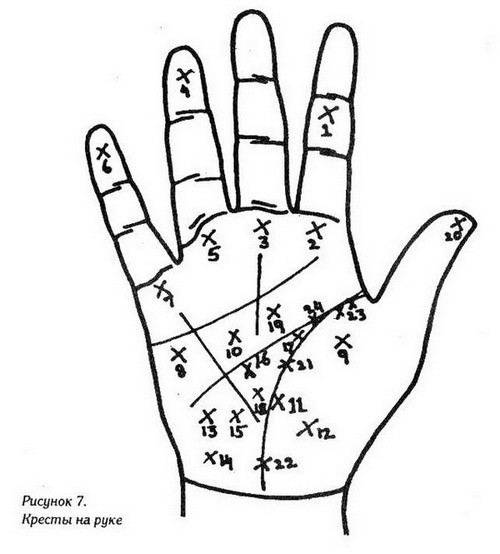 Aber der Chiromant K. Pilipishin glaubt, dass das Kreuz vor tödlichen Unfällen schützt und ein Talisman gegen Feinde ist. Die Chiromantie deutet Kreuze auf der Hand, die sich auf der Saturnspitze befindet, als Gefahr, die von Menschen ausgeht.