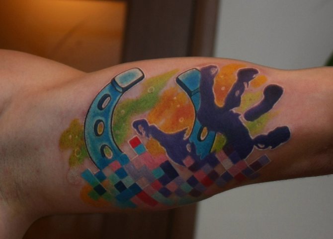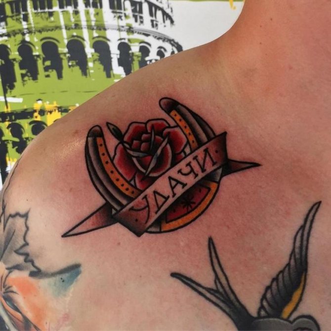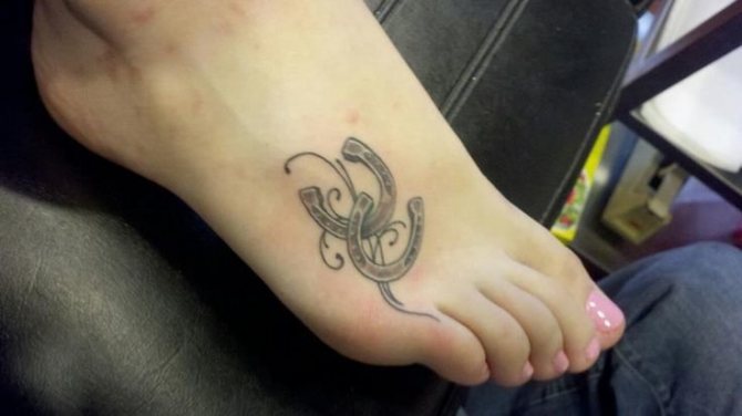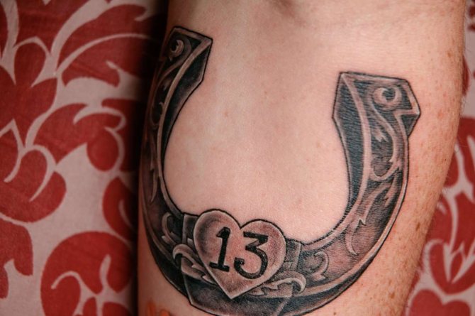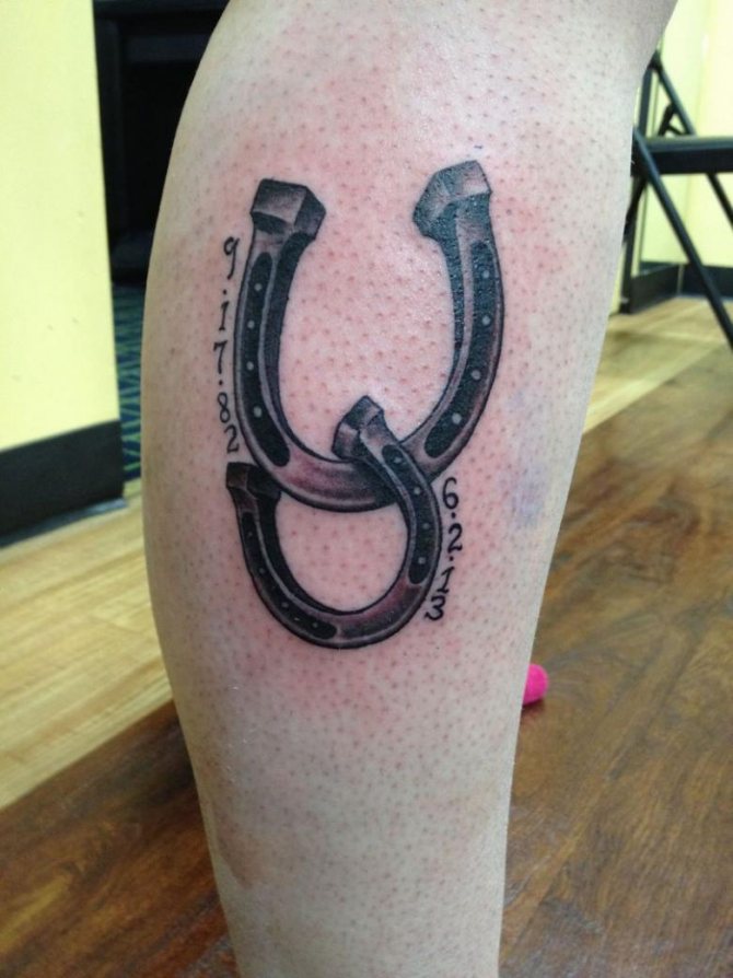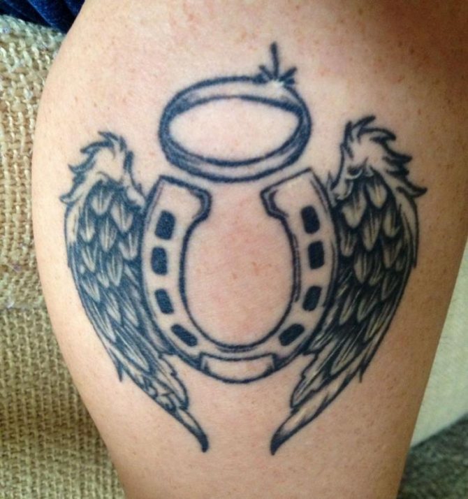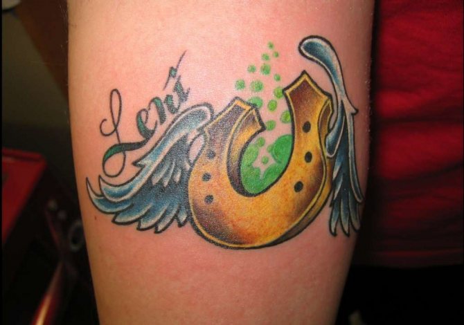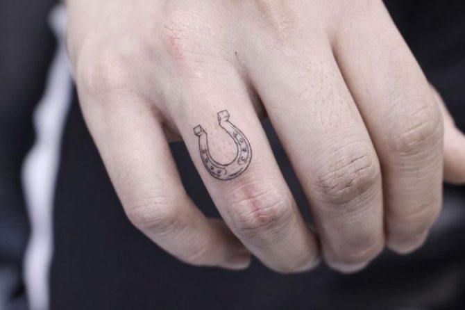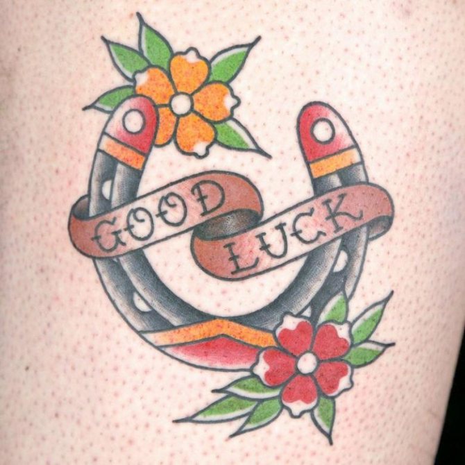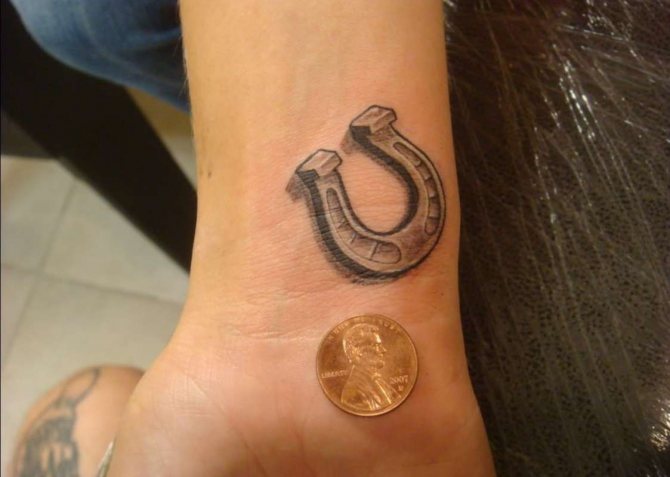 Als Talisman, der Glück bringt, wird das Hufeisen-Tattoo von Männern gewählt, die sich ihrer Fähigkeiten nicht ganz sicher sind. Für sie ist der schützende Talisman ein Mittel, um einen männlichen und starken Charakter zu erlangen. Besitzer der Tätowierung ist nicht von negativen Gedanken betroffen und nicht die Aufmerksamkeit auf die ätzenden Wünsche der Feinde zu zahlen. Das Hufeisen, das mit den Enden nach oben abgebildet ist, wehrt den Zauber böser Menschen ab, da seine magischen Eigenschaften sehr stark sind.
