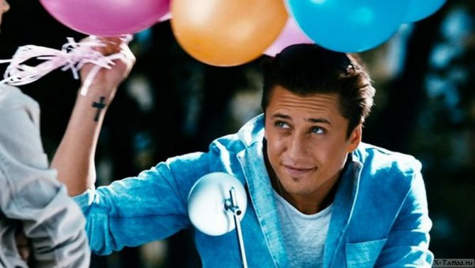 Dieses Symbol ist besonders für Medienpersönlichkeiten von Bedeutung: Es schützt sie vor dem bösen Blick und negativen Einflüssen von außen. Eine ähnliche Tätowierung, nur auf dem Unterarm, hat der russische Moderator und Schauspieler Dmitry Nagiev.
