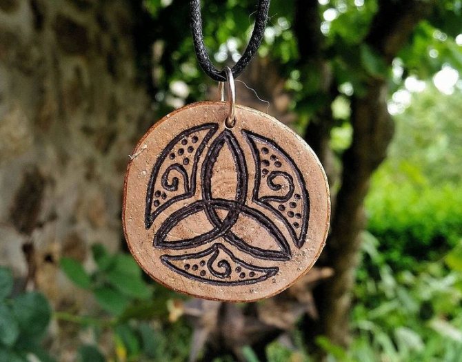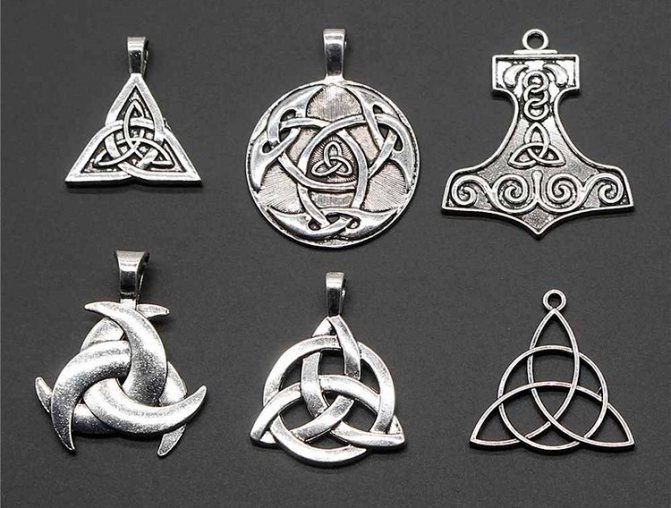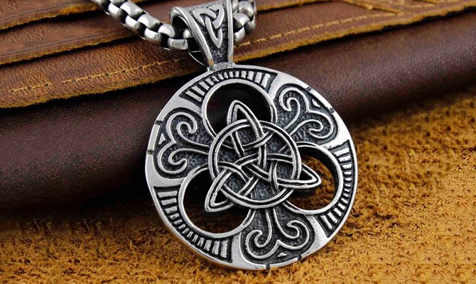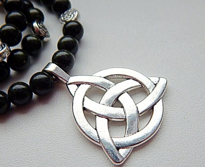 Seit jeher galt der keltische Knoten als die Harmonie des Lebens, die Unteilbarkeit und Unendlichkeit der Existenz, die Einheit des geistigen Anfangs und der Materie. Das Kleeblatt galt als Sonnenzeichen und symbolisierte den Weg des Tageslichts am Firmament. Sonnenaufgang, Zenit und Sonnenuntergang wurden mit den Phasen des menschlichen Lebens verglichen. Seit dem Altertum wird das Sonnensymbol als Talisman verwendet. Es wurde angenommen, dass das keltische Dreieck sollte Entschlossenheit und Zuversicht vermitteln, Glück bringen und den bösen Blick abwehren