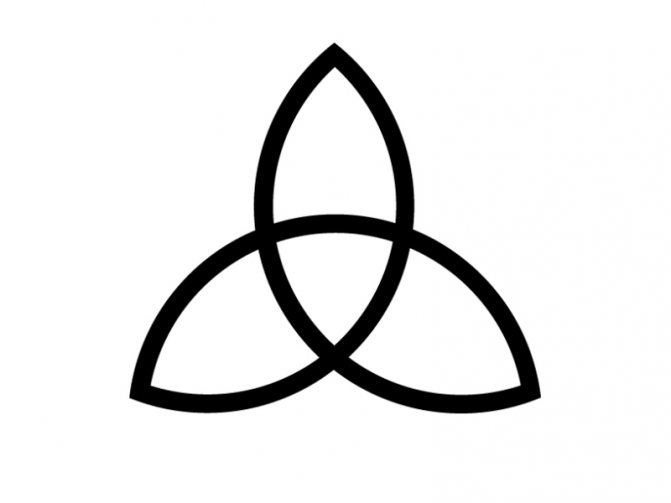 ("triquetra" aus dem Lateinischen - "dreieckig") - das älteste heilige Symbol in Form eines Kleeblatts. Es handelt sich um eine harmonische Verflechtung dreier blattförmiger Figuren: eine zeigt nach oben, die beiden anderen nach unten. Einige Bilder enthalten einen Kreis in der Mitte oder einen äußeren Rand.