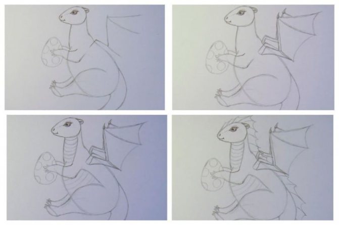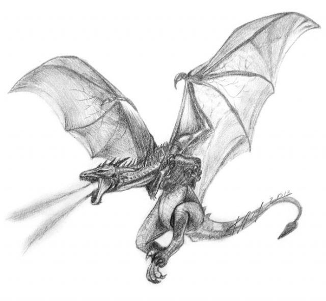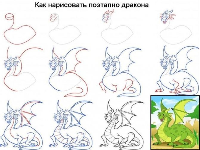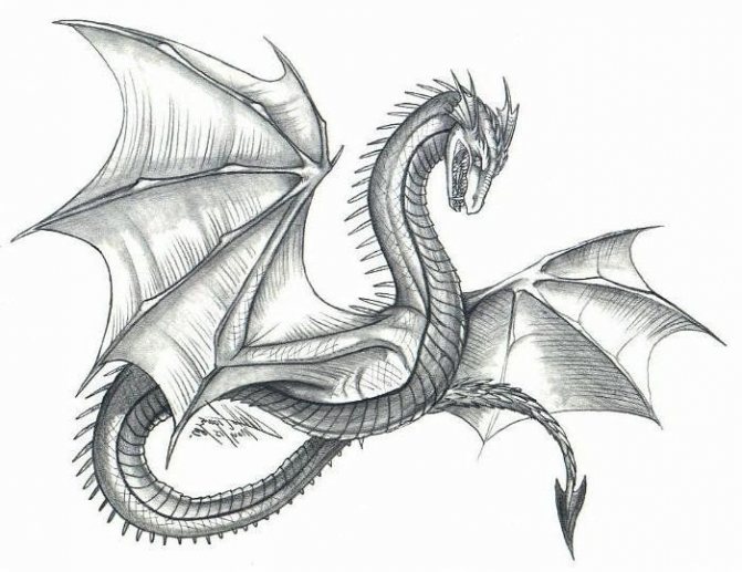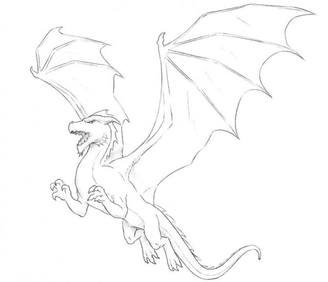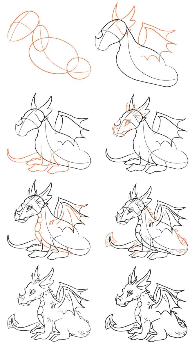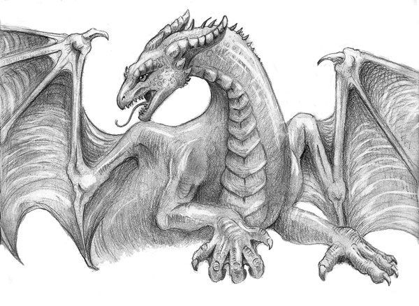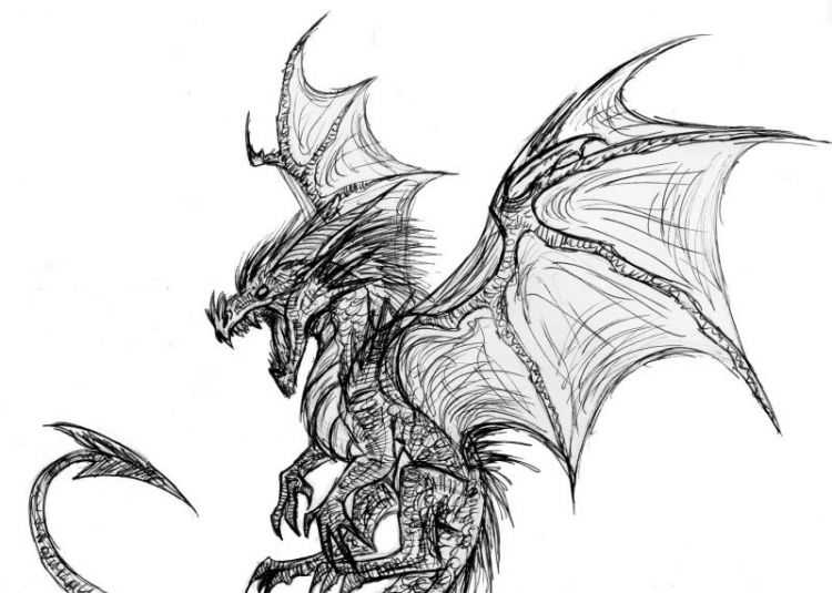 La version d'un dessin pas à pas d'un dragon convient aussi bien aux adultes qu'aux enfants. Au départ, l'esquisse est réalisée au crayon, pas trop mou, afin qu'elle ne transparaisse pas à travers la peinture par la suite.