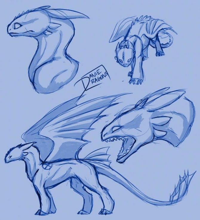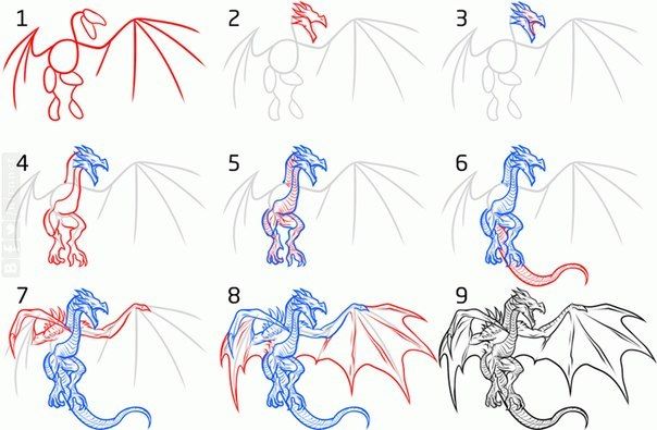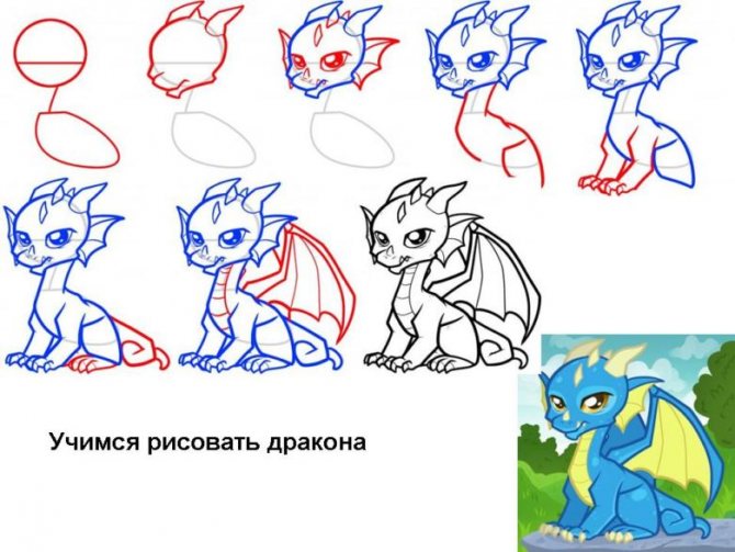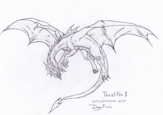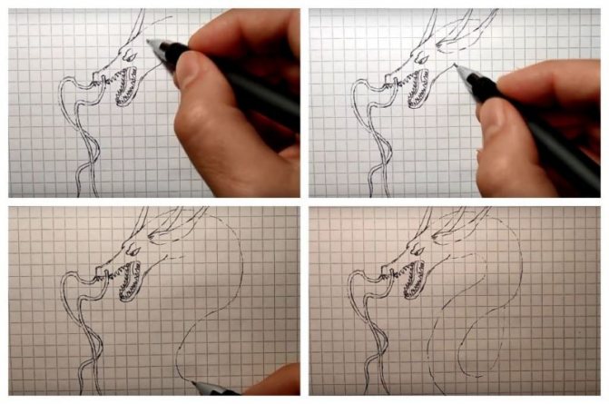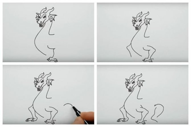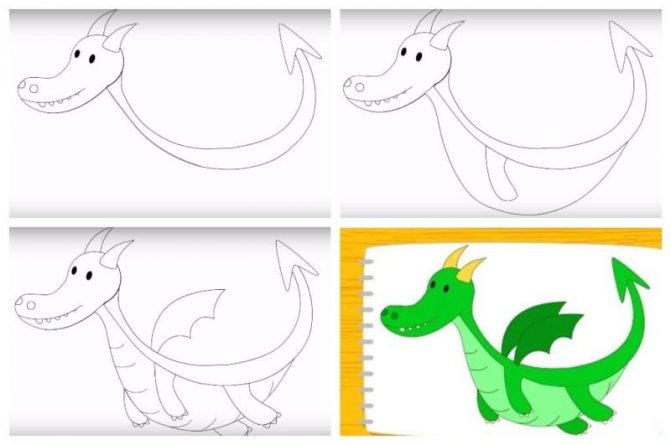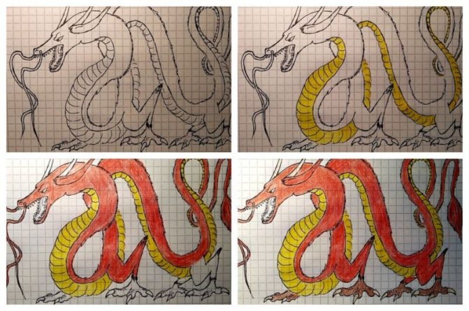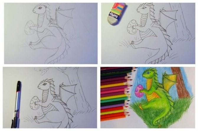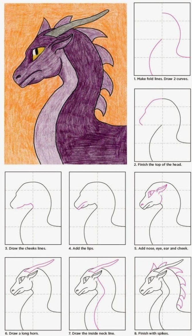 La version d'un dessin pas à pas d'un dragon convient aussi bien aux adultes qu'aux enfants. Au départ, l'esquisse est réalisée au crayon, pas trop mou, afin qu'elle ne transparaisse pas à travers la peinture par la suite.