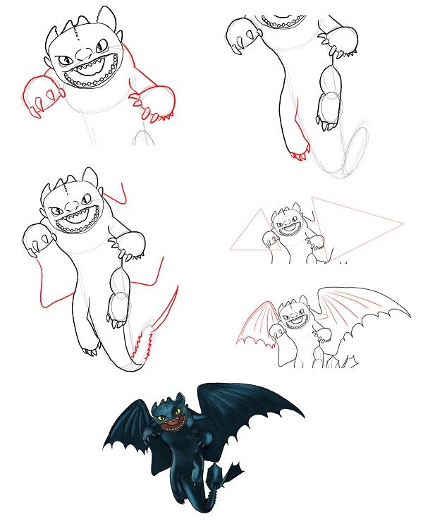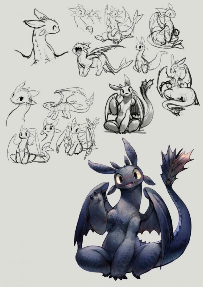 - A la fin, le dorisovuyu a des ailes, des dents, des griffes sur les pattes avant et arrière. Si vous le souhaitez, vous pouvez ajouter des pointes.