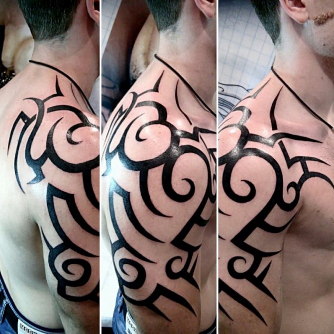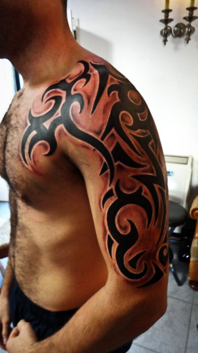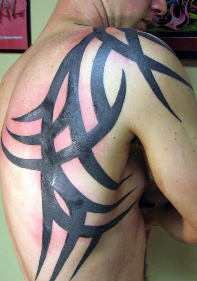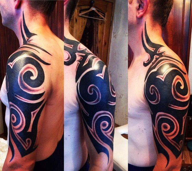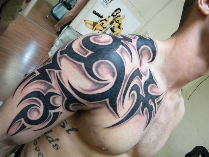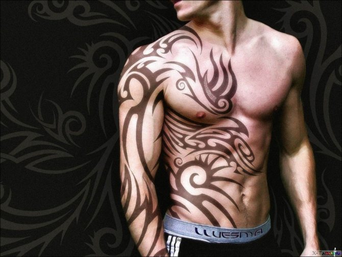 Certains préfèrent les motifs à grande échelle qui sont également harmonieux sur le dos et la poitrine. Selon votre degré d'imagination et d'audace, vous pouvez obtenir un tatouage tribal où vous voulez.