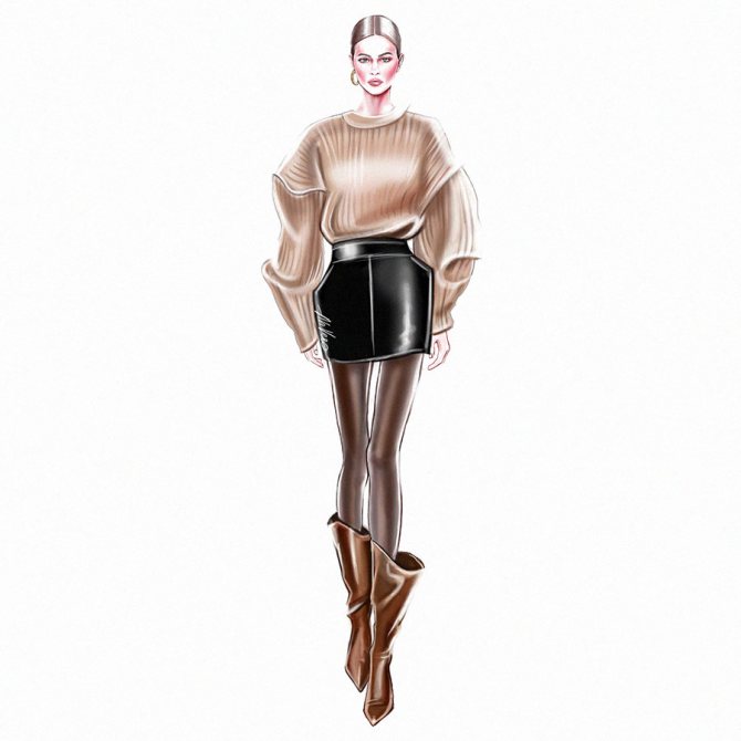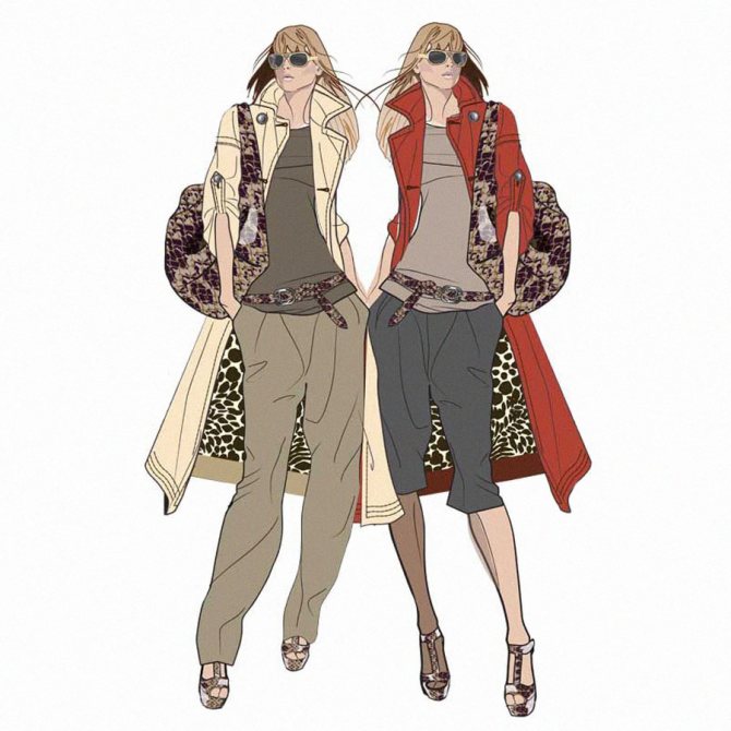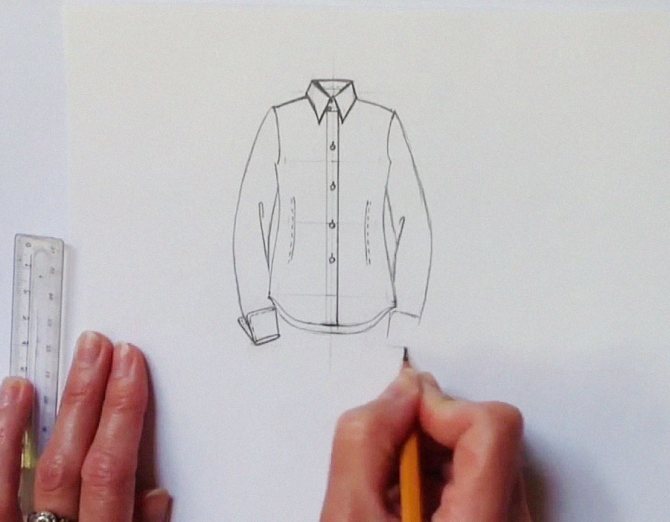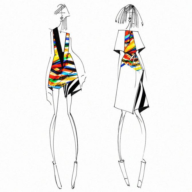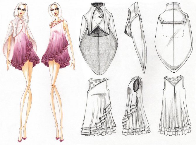 - Croquis artistique (croquis créatif) - un dessin réalisé dans n'importe quelle technique de dessin, avec un dessin détaillé de la forme des vêtements et de ses éléments individuels.