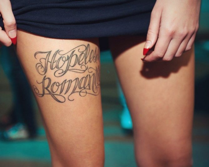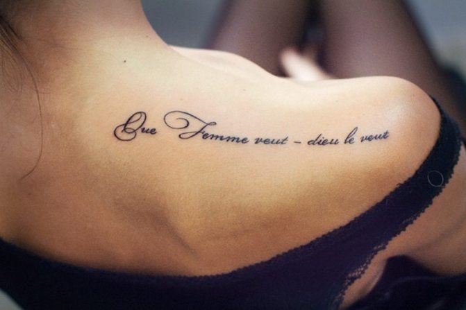 Pour choisir une police et une couleur, il est utile de consulter un spécialiste. Il sera en mesure de montrer à quoi ressemblera le résultat. Ce n'est qu'après cela qu'une décision pourra être prise. L'endroit le plus courant pour voir l'inscription est sur les doigts, le poignet, l'avant-bras et l'épaule, sur le dos ou sous la poitrine. Idéalement, le tatouage ne doit pas seulement être beau, il doit aussi transmettre un message. Pour ce faire, il convient de fouiller en soi et de déterminer quels mots peuvent refléter l'état intérieur d'une personne.