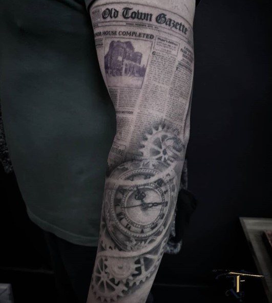 En plus de cela, les tatouages de journaux sont également réalisés par les membres du sexe fort qui sont fans du style rétro. Dans ce cas, le dessin d'un journal d'anciennes éditions est appliqué sur le corps.