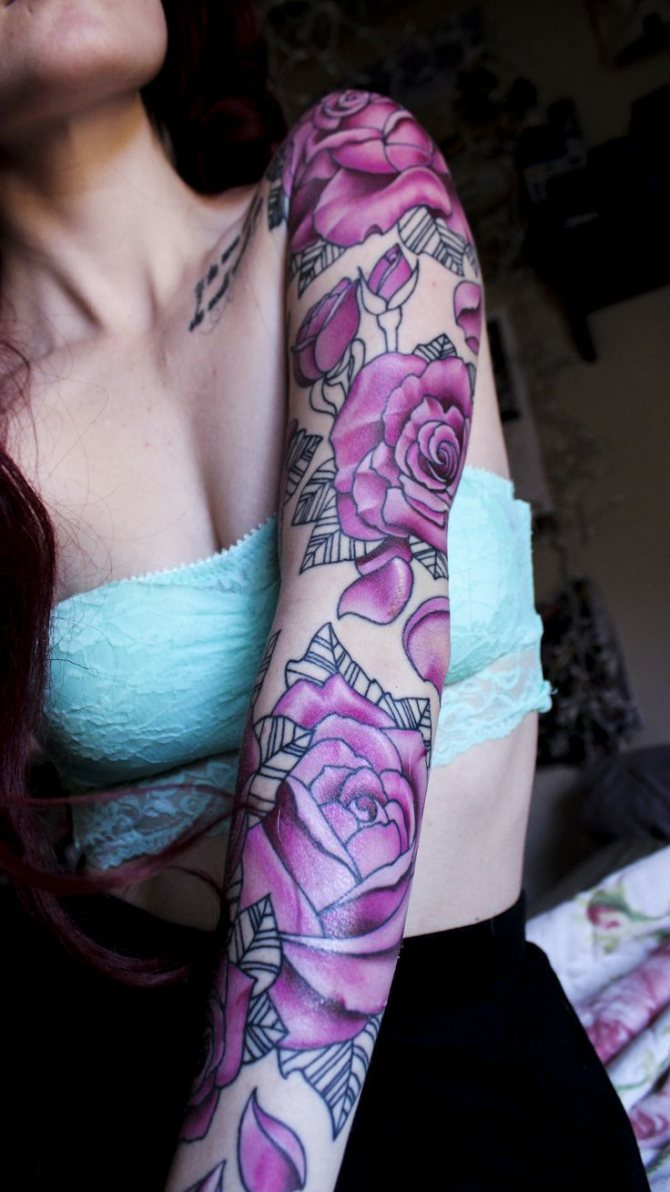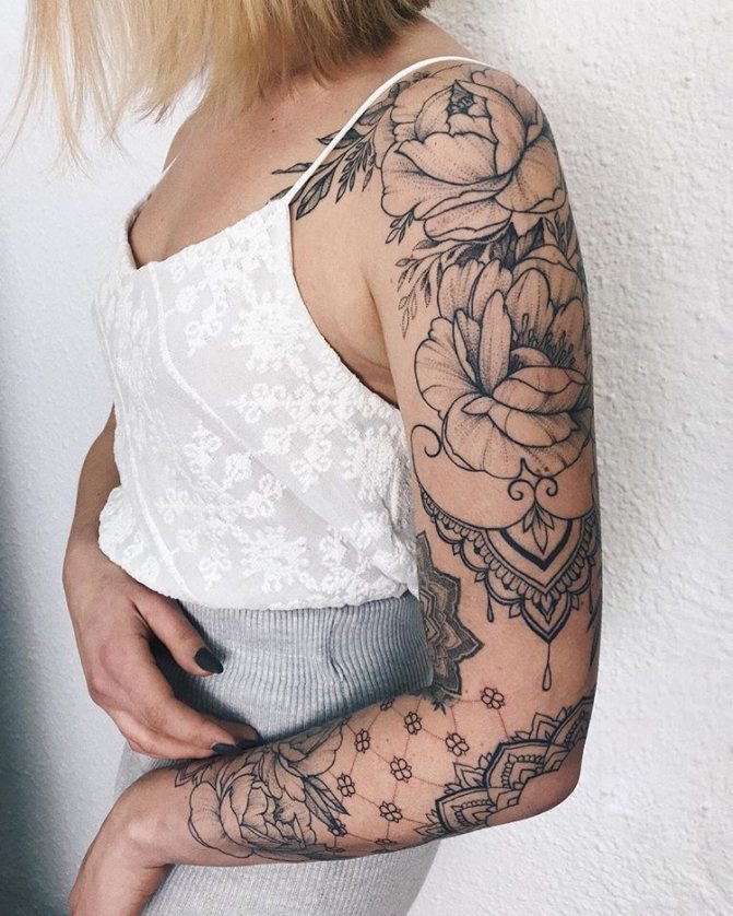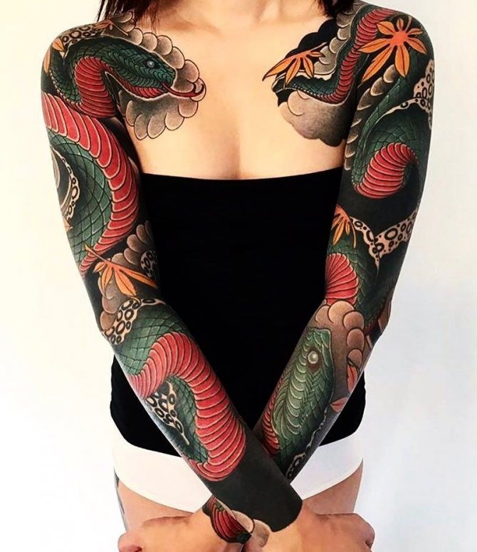 Les femmes aussi souvent que les hommes appliquent un manchon de tatouage sur leur corps, car ils leur donnent l'occasion de montrer leur individualité et de se distinguer de la foule. Le tatouage de la manche d'une femme doit être choisi très soigneusement, car la principale exigence pour cette image corporelle est la netteté, la couleur et la beauté. Le plus souvent, les filles choisissent le style réalisme, chicano, old skool. Pour une manche de tatouage caractérisée par des motifs naturels. Cela peut être un papillon, une fleur, des chats sauvages ou apprivoisés souvent rencontrés, des brins de sakura. Il y a des violations des normes habituelles et les femmes appliquent des dessins avec des serpents, des diables et des croix.