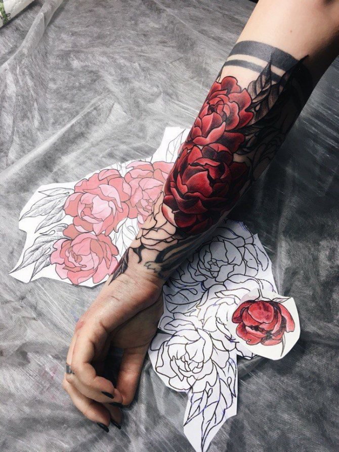 Les esquisses avec des roses sont la solution la plus populaire parmi les amateurs de tatouages féminins.